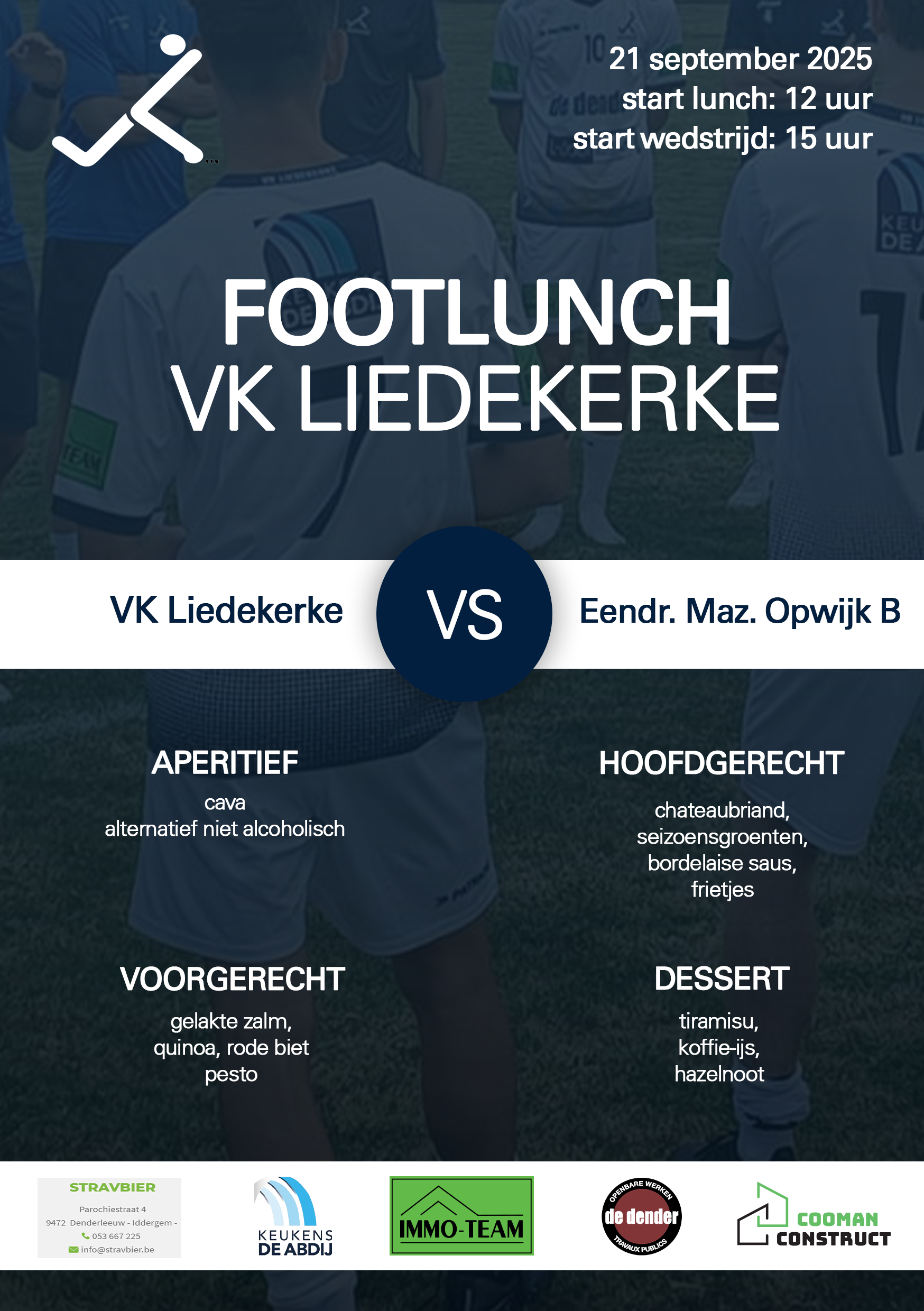 Kom op zondag 21 september 2025 naar de footlunch van VK Liedekerke!